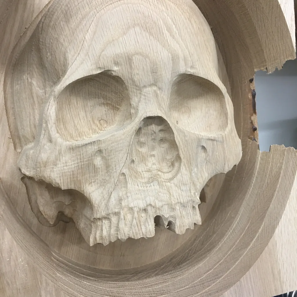 Skull carving complete. Ready to be trimmed.