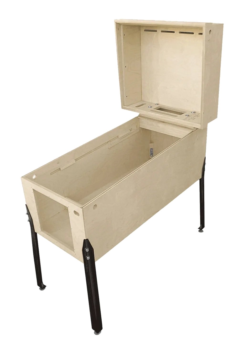 REVERSE ENGINEERED PINBALL CABINET: Customer sells replacement pinball cabinets for vintage machines. He provided a vintage cabinet to be precisely measured to assure an exact fit to the original. This cabinet needed to be designed so it could be shipped “flat packed” and assembled by the customer. The cabinet was engineered with custom interlocking joints and precision components to assure perfect fit, alignment, and strength of the finished product.