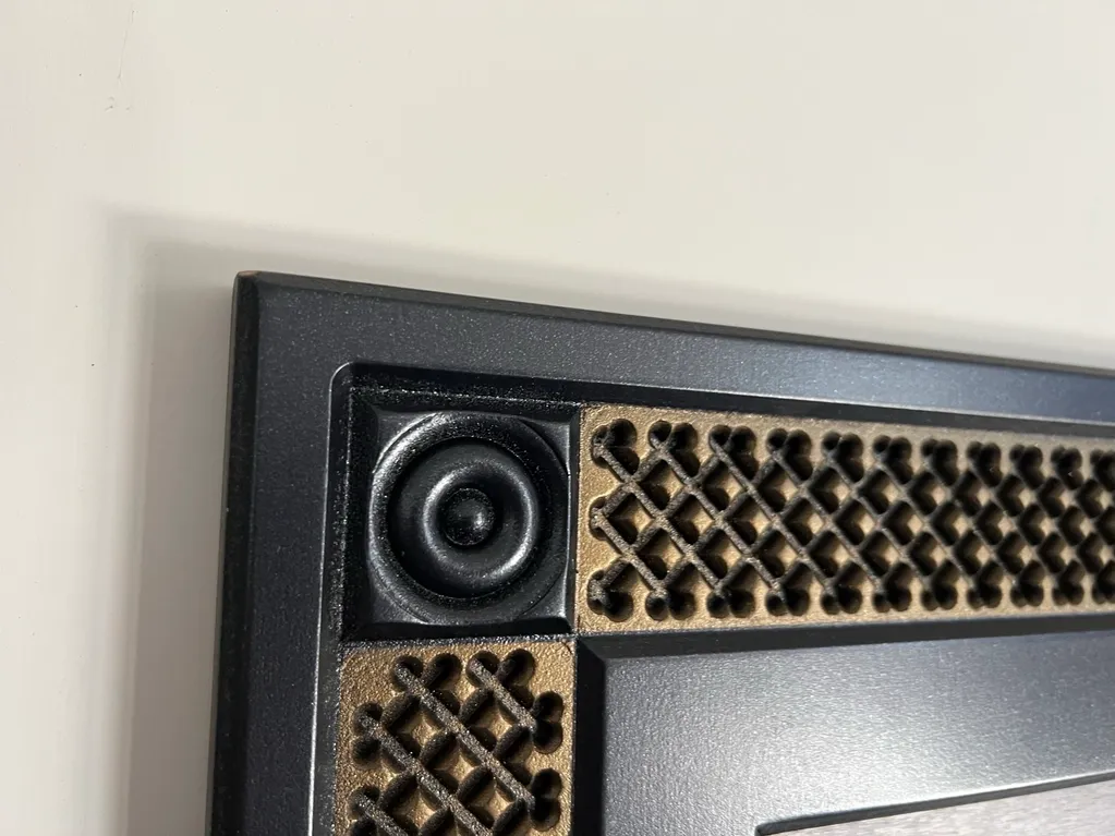 CUSTOM ONE-PIECE ART FRAMES: We designed a number of unique art frames carved out of a single solid wood panel. This process allows for unique corner designs and eliminates and chance of seams separating or cracking. Each frame is coated with an in-house, proprietary, custom blended stone dust finish .